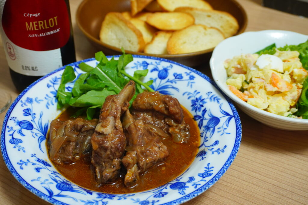 合わせる料理は、この軽すぎると感じる部分を補えるよう、コクのある赤ワイン煮に決定!