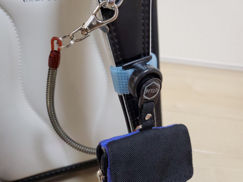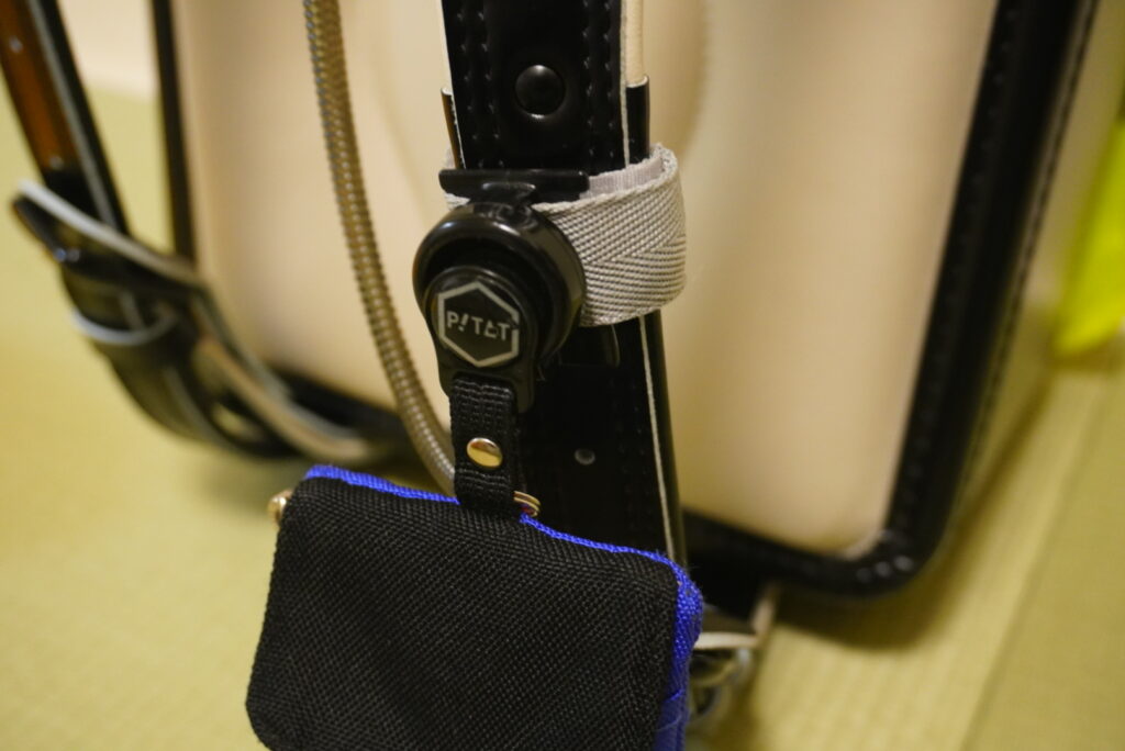 懸念点としては、このケーブルタイの材質がナイロンで硬く、ちょっと鋭い感じがします。ズレた時などにランドセルの肩ベルトを傷つけないかが心配かな。