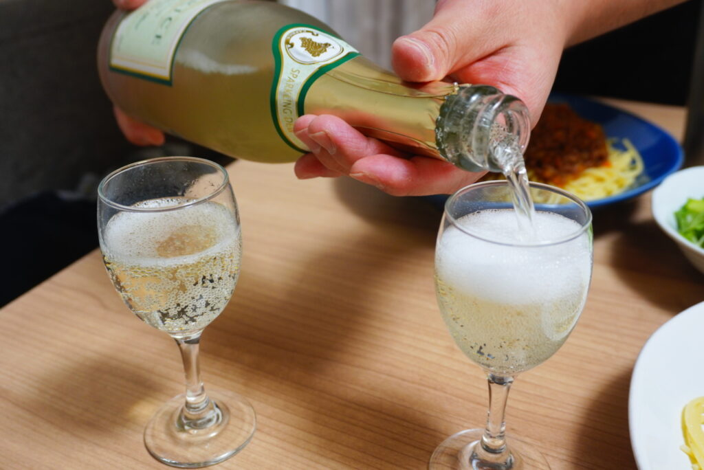特に、普段あまりワインを飲まない人にウケが良さそうな飲みやすさを感じます。炭酸のおかげもあってか、ノンアル特有の風味の弱さが気になりずらいのも高評価。