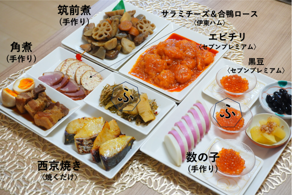 おせち料理の大半が市販品という手抜きおせちですが、自分たち好みのおせちに仕上がりとても満足!特に小人数でのおせちならこれもアリでは?!「黒豆は自分で煮た方が美味しいかも…」なんてひそかに思いつつ、来年はこれをベースに更なる工夫をしていきたいです!