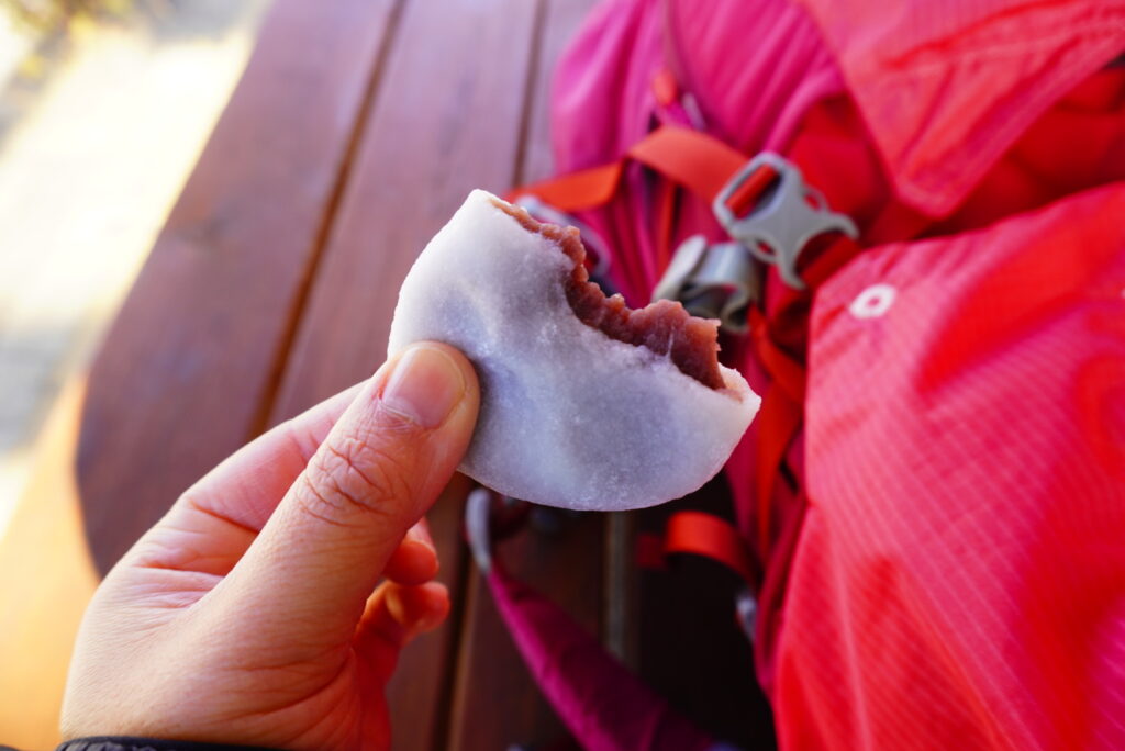 このお餅は、毎朝職人さんが杵と臼でついて仕上げたものだとか。コシがありつつもふわっと柔らかいお餅には、上品な甘さのこし餡が包まれています。