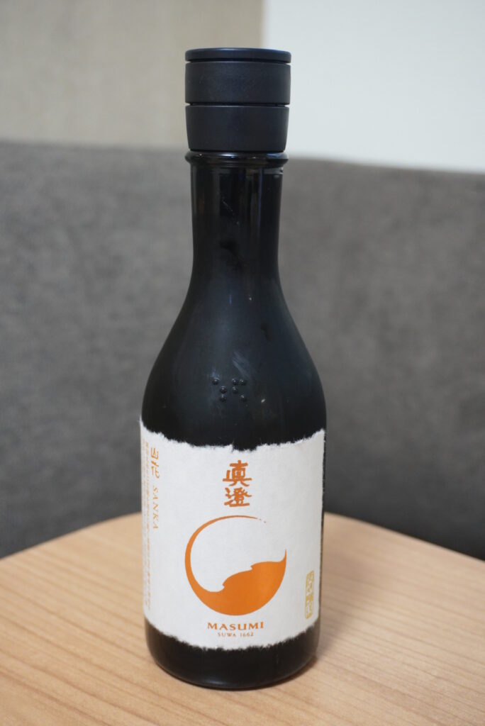 今回味わう日本酒は、昨年末の上諏訪家族旅行の際に、蔵元のセラ真澄で購入した一本。