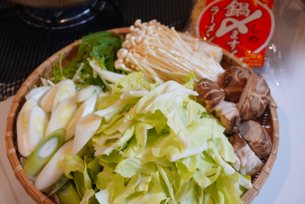 ほぼレシピ通りにお野菜を準備し、〆は鍋用のラーメンにしてみました。