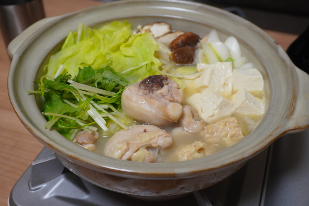 商品説明によると、水炊きによく合う具材はキャベツ・白ネギ・春菊・しいたけ・えのき・しめじ・にんじん・春雨・豆腐などとのこと。