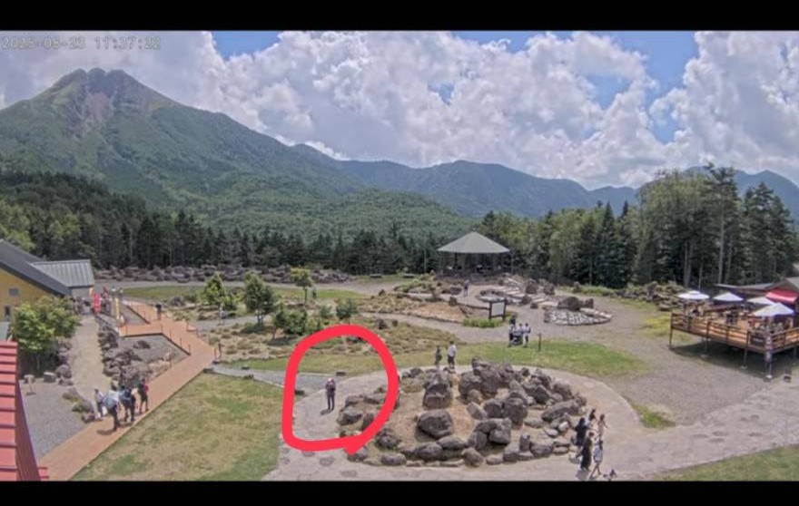 山頂駅には日光白根山方面と足湯方面にライブカメラが設置されています。家族に無事を伝える目的も兼ねて、ライブカメラ自撮り。
