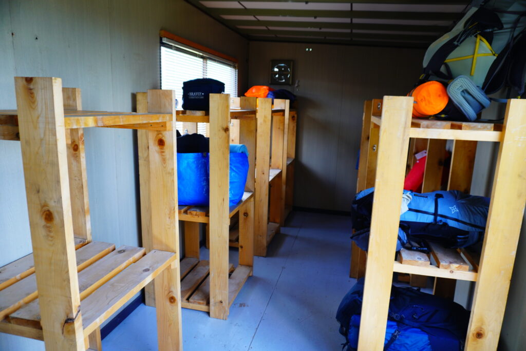 ③設営時間外の荷物置き場 チェックインの際にもらえる荷札をつけ、荷物を置いておくことが可能です。無施錠ですので貴重品は置かないように。中はめちゃくちゃ暑い。