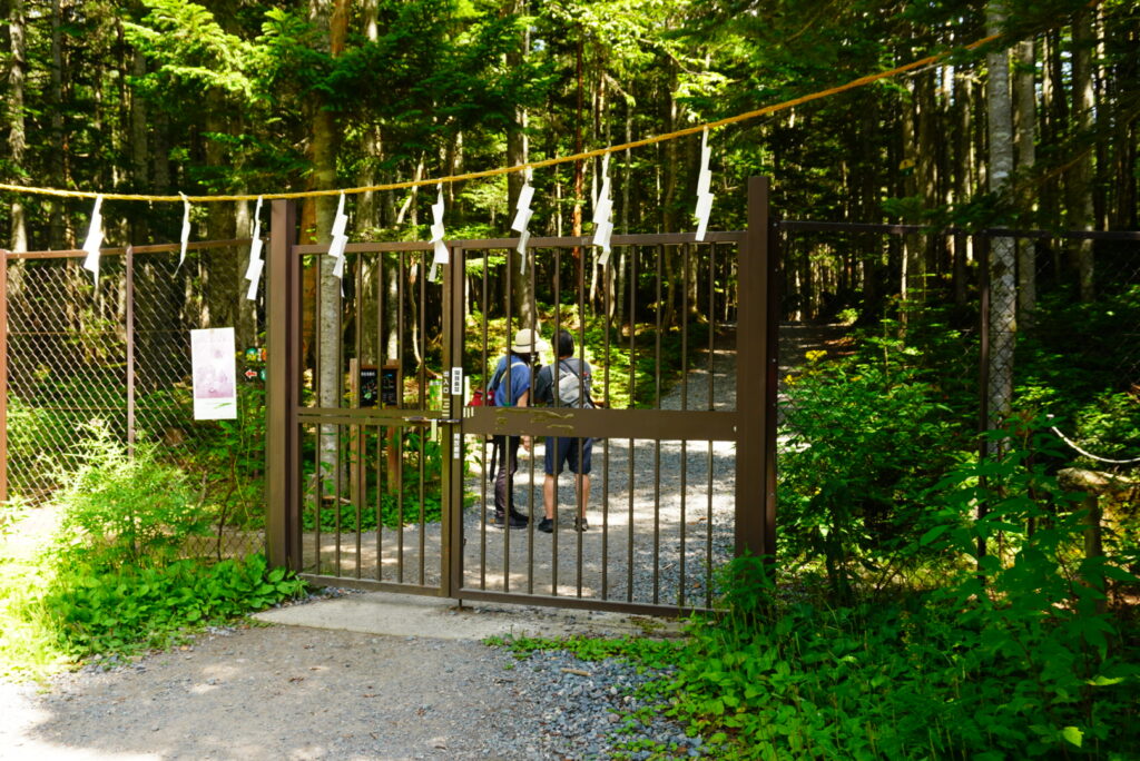 二荒山神社でご挨拶をしたら、ゲートをあけて登山道へ。日光白根山へ向かう人も同じゲートを通過します。