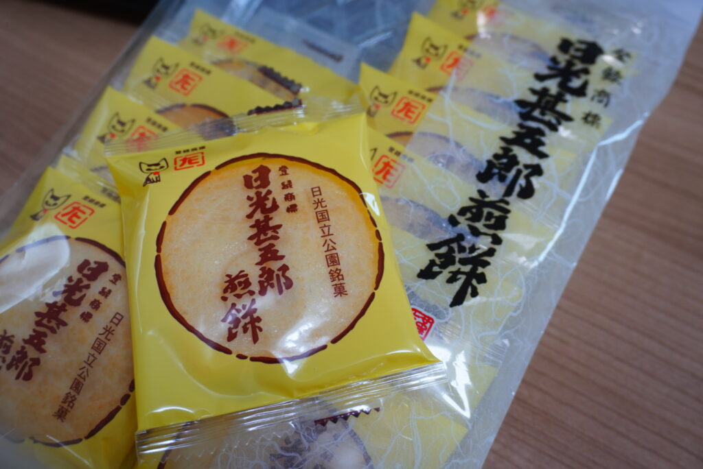 温泉でさっぱりしたら、売店を物色。日光土産で大好きな甚五郎煎餅があったので購入!バター風味と軽い塩っ気が癖になるソフト煎餅です。
