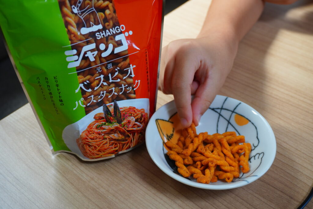 帰宅後、パスタスナックを食べた息子の反応がとても良くて「すごく美味しい!これ好き」と好評でした♪ 市販のスナック菓子にはないようなトマト+海鮮系?のような複雑な旨味に、ベースのパスタの香ばしい風味が相まってとても良い!